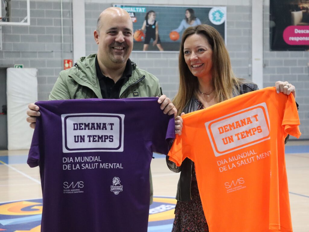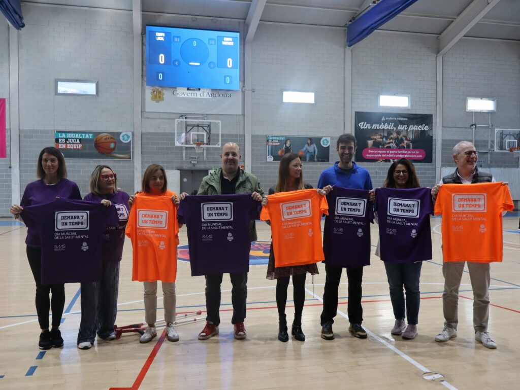 La ministra de Salut, Helena Mas, ha subratllat aquest dijous la importància de visibilitzar la salut mental, sensibilitzar la societat i combatre l’estigma que encara l’envolta, durant la celebració del partit de bàsquet solidari ‘Dona’t un temps’, un acte central del Dia Mundial de la Salut Mental, organitzat pel Servei Andorrà d’Atenció Sanitària (SAAS) amb la col·laboració del Govern i el BC MoraBanc Andorra.